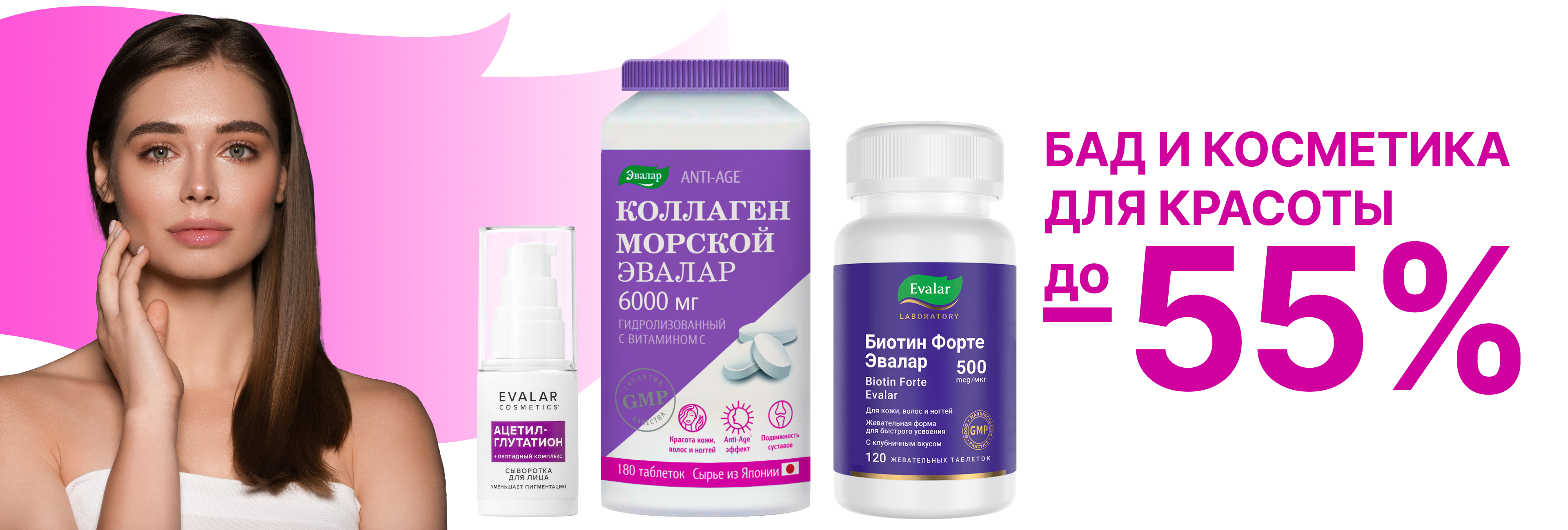 Мы запускаем акцию на БАДы и уходовую косметику для красоты — теперь со скидкой до 55 %! Не откладывайте заботу о себе! Пора побаловать себя качественными препаратами для красоты.
